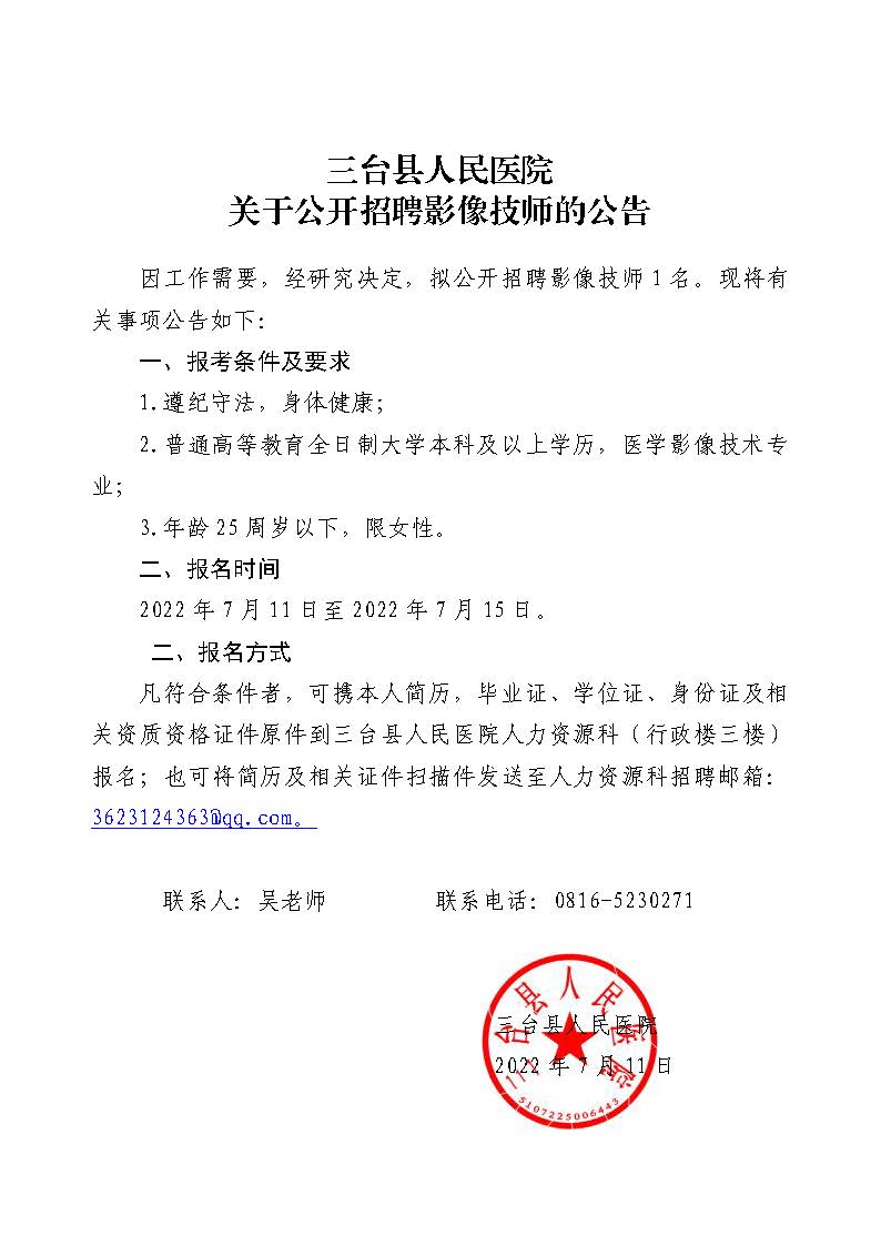 三台县人民医院关于结核分子生物学耐药检测设备市场调研的公告