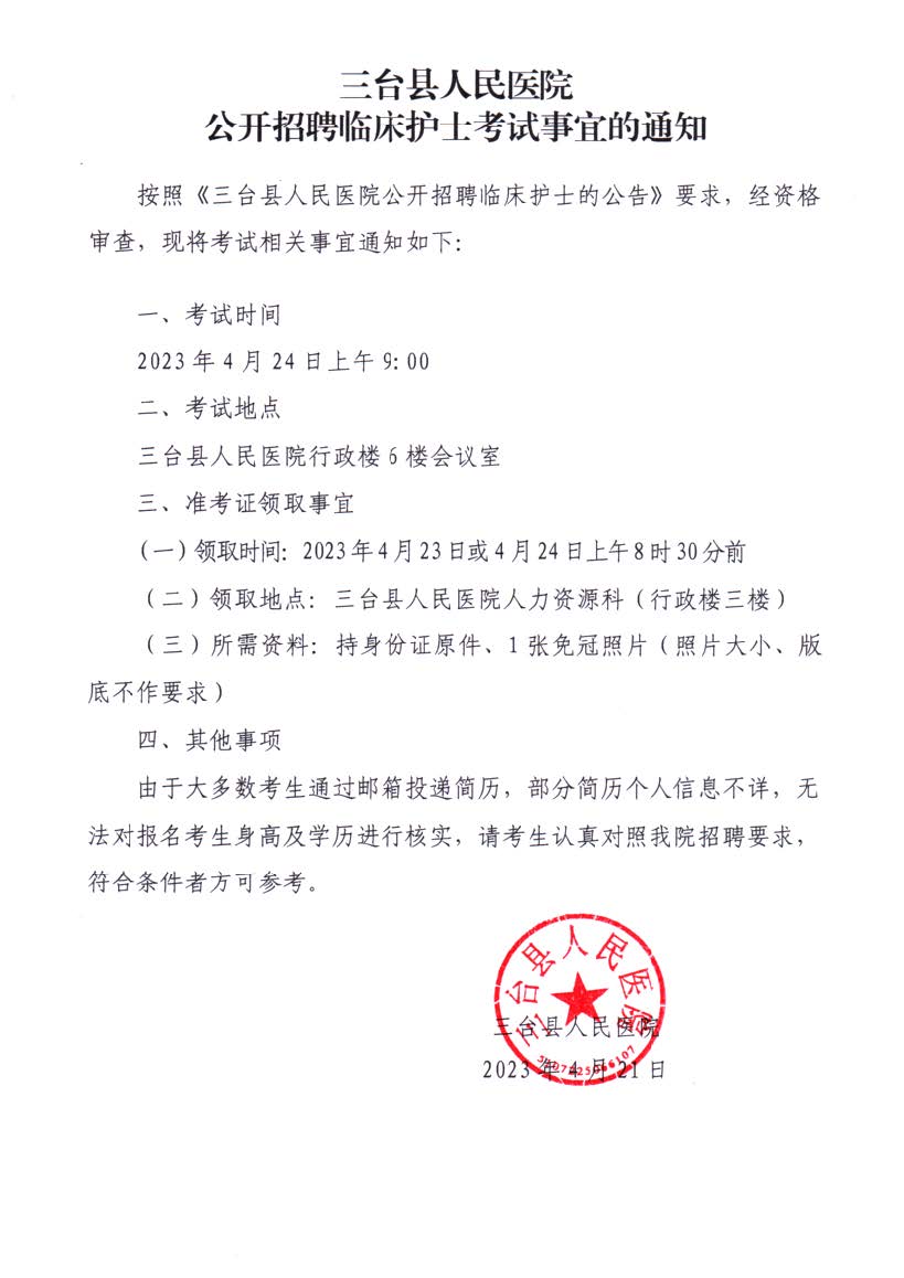三台县人民医院2023年第二轮专业技术人员招聘启事