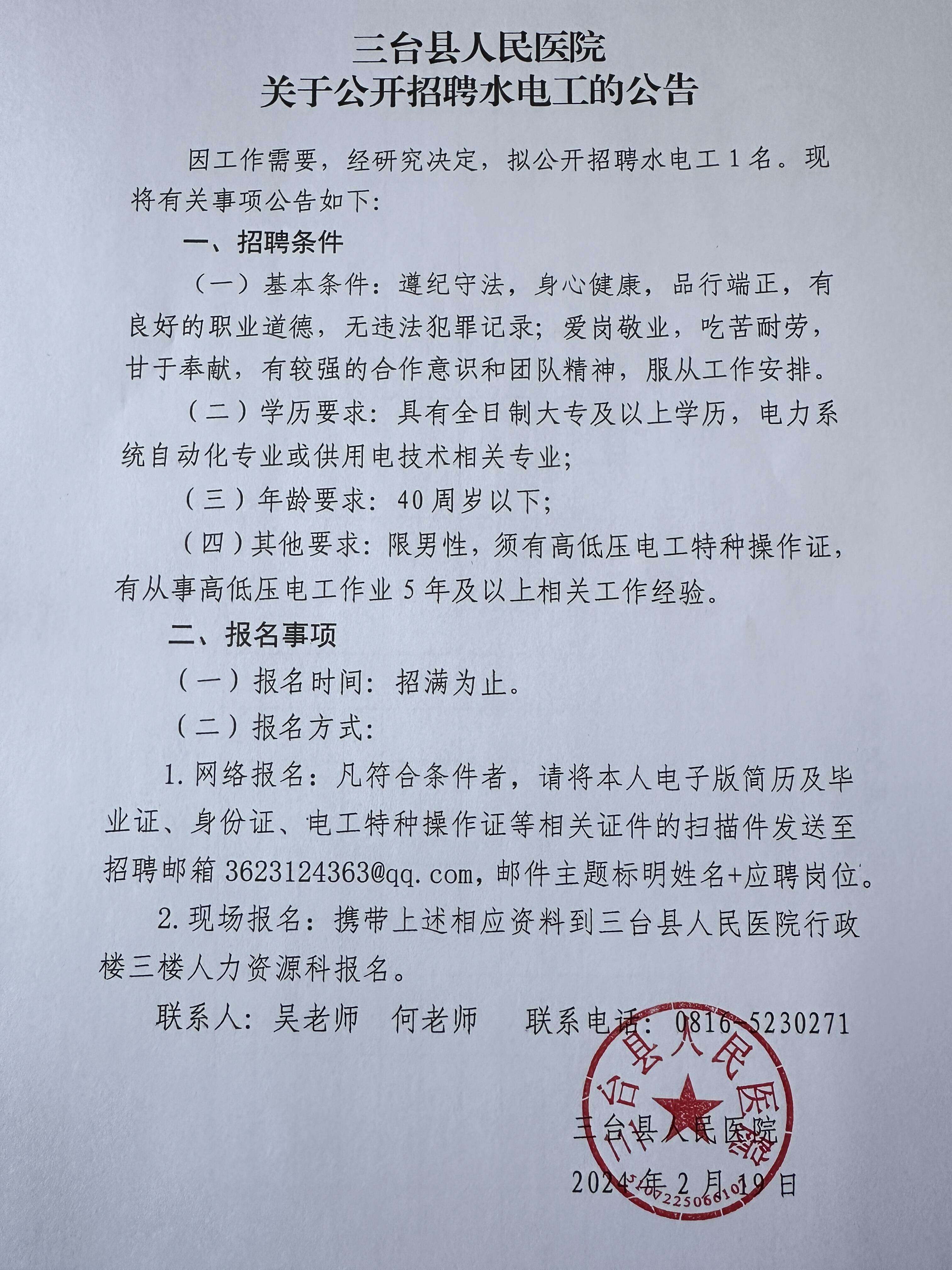 三台县人民医院 关于采购管理系统上线试运行的公告