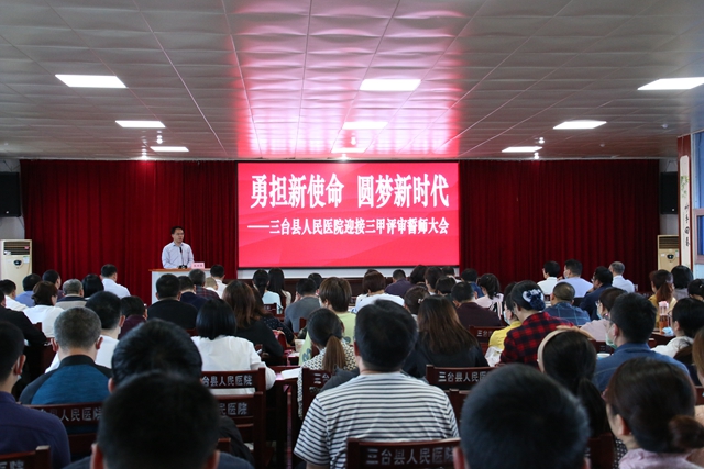 4月28日下午,在三甲复审进入冲刺阶段的关键时刻,县人民医院召开迎接三甲综合医院誓师大会。党委书记卿培文主持会议,院领导班子、全院中层干部、职工代表150余人参加了会议。 副院长黄泗霖发表请战宣言,院长朱世英向他授予战旗,寓意旗开得胜。来自临床、门诊、医技
