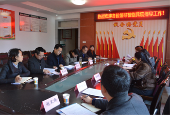 2月17日,县人社局副局长姜海英、黄青春等一行5人到我院调研医保,党委书记、院长朱世英作了工作汇报。