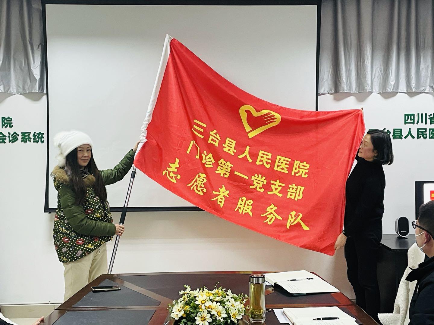 会上成立了医院门诊第一党支部志愿服务队,并进行了授旗仪式。
